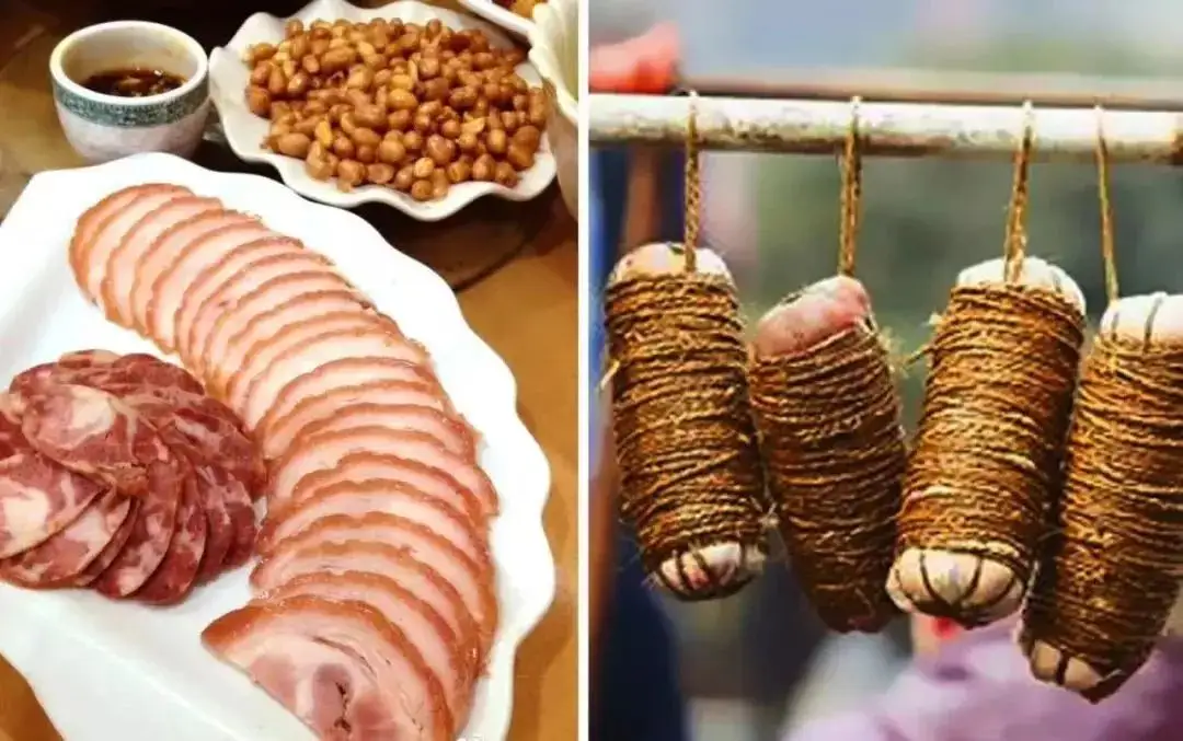 襄阳有一种特色美食,名叫缠蹄。精选上好的猪蹄,剔除里面的骨头,先用各种香料腌制一天,而后用麻绳将其一圈圈缠捆牢固,挂在外面风干晾晒,等到半个月后,香料完全沁入肉中就可以吃。