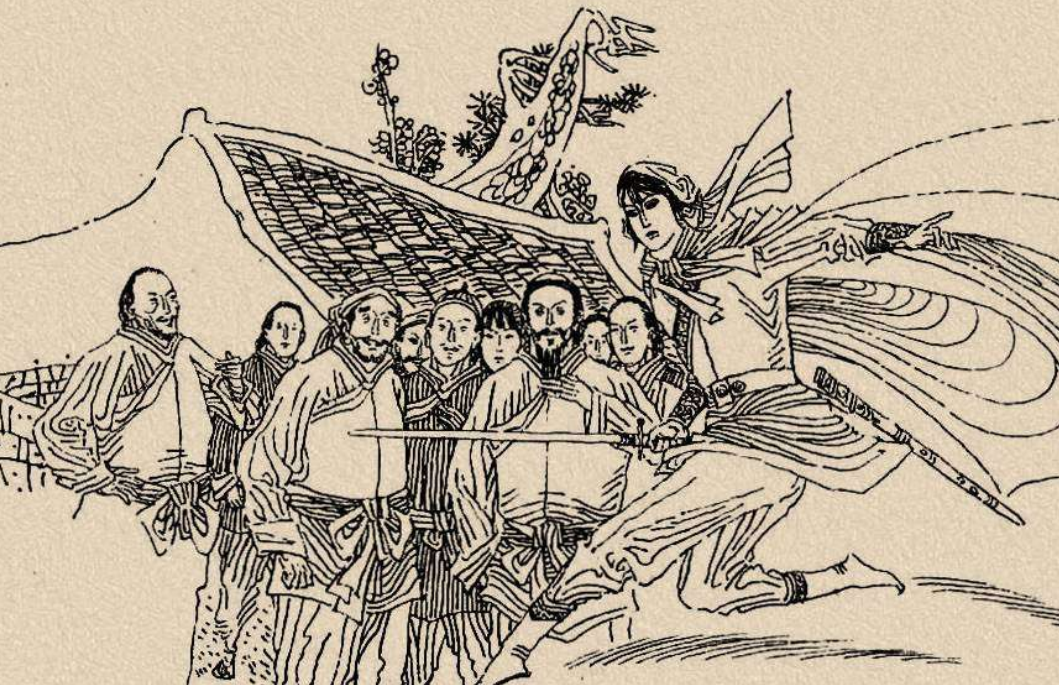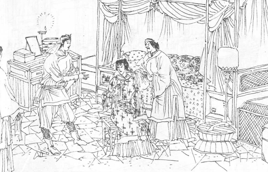 夫妻俩到了外室,大娘笑脸迎上前来,说道:“姑爷现在要回去,我没有什么东西好送的,就用这根双节棍给你送行吧!”
