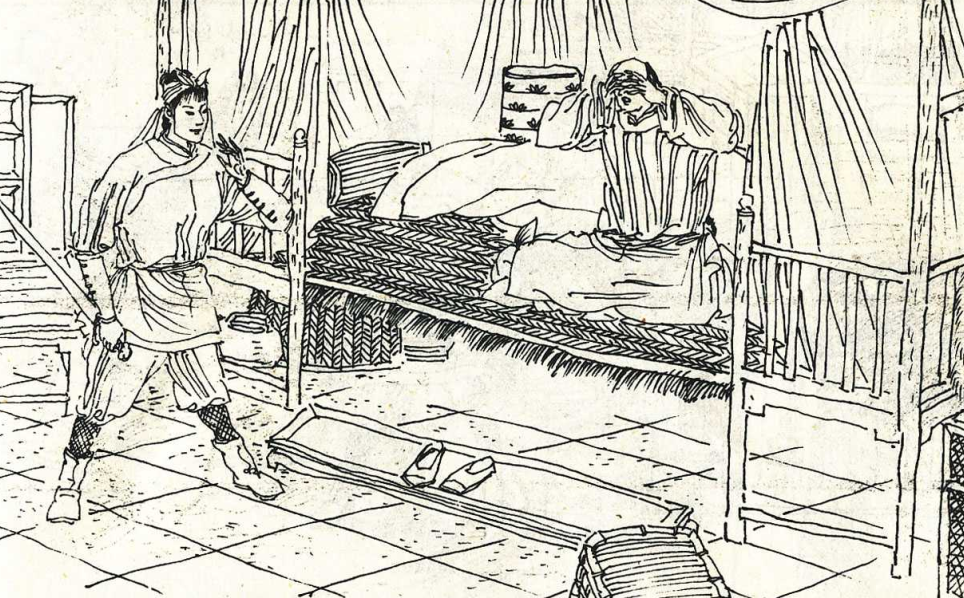 夫妻俩一夜惶惶不安,合衣而眠。第二天一大早,就连忙起床做准备,打足了精神,拿上最称手的兵器,推门而出。