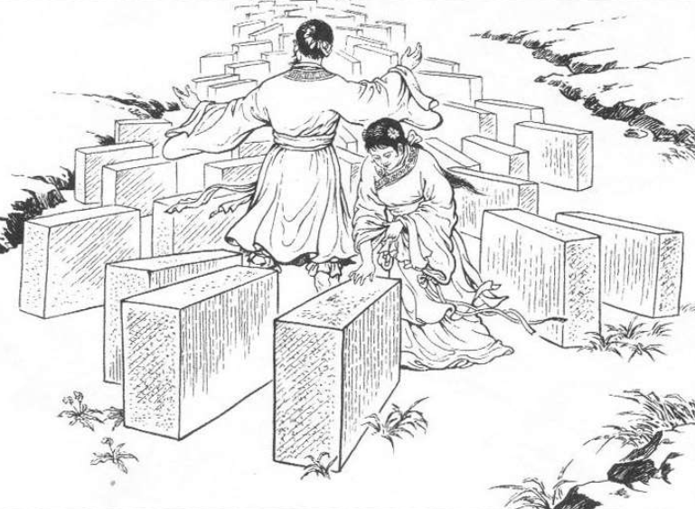 接着又来了一位贡生,他也想试试,还从孔庙搬来一块石砖,也累得满头大汗,这块石砖也无法放进间缝之中。