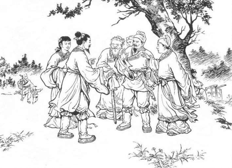 一群阔老爷,大秀才忙乎了半天,都没有能成事。众人哄堂大笑。