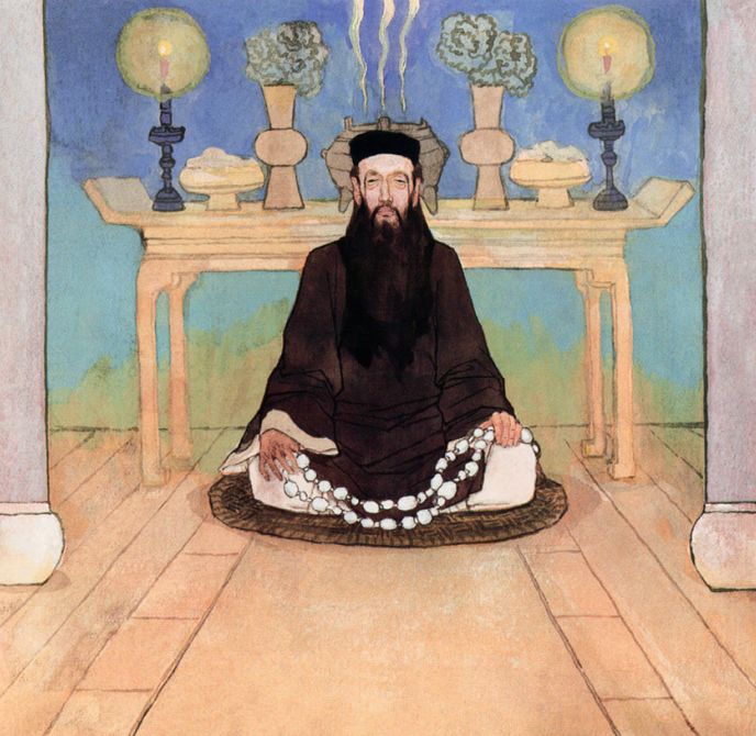 道士一打听,这家员外有一个千金小姐,没出嫁死了丈夫,在家守寡,发誓不再嫁人。这天来的满门宾客,是为小姐立贞节牌坊的。