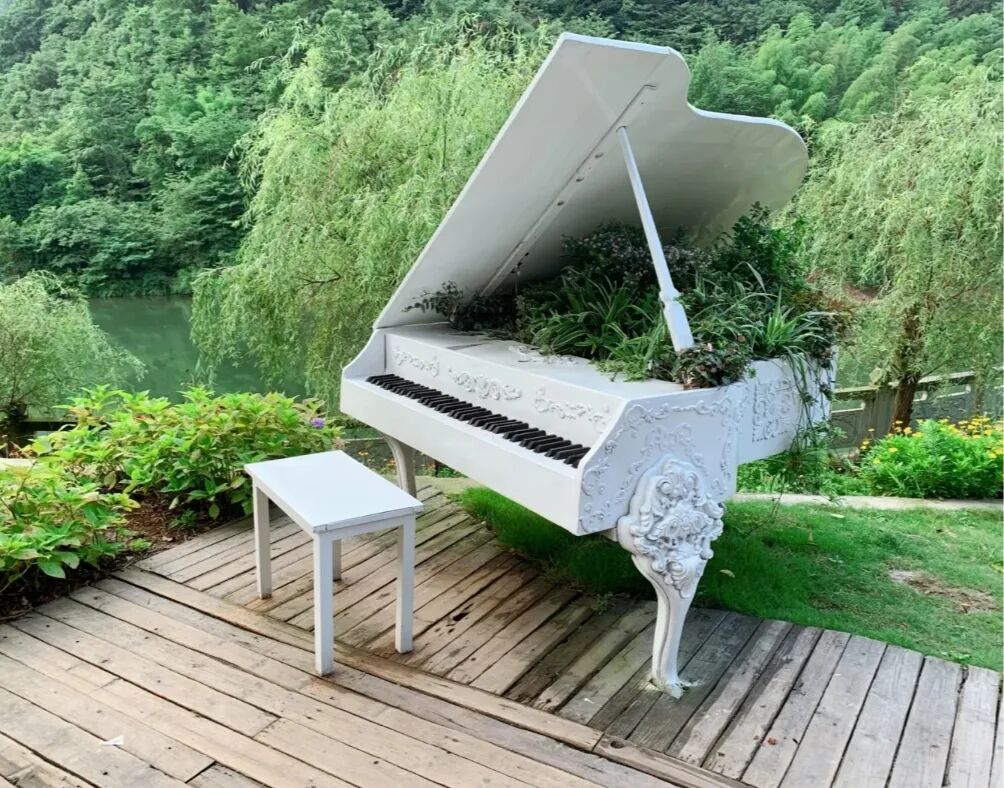 立在小屋外的钢琴,没有奏出欢乐的曲调,却开满了鲜花,盛放的花花草草,散着小清新的气息,文艺的钢琴,清新的植物,有了治愈的画面,风吹了过来,熟悉的夏天,有了轻快的旋律。