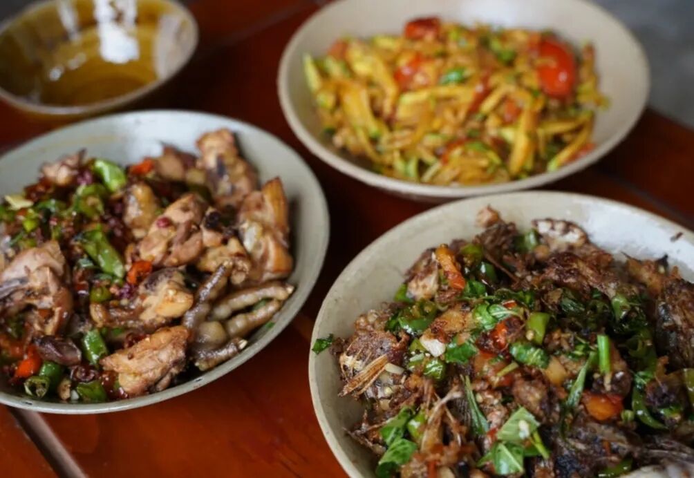 不用刻意去寻觅村中美食,吃着家常菜,便能感受到家的温馨,村中的土鸡,经过烹饪过后,鲜嫩可口,苗族人喜好酸辣的食物,加上辣椒,鸡肉有了香辣味,稻田里的鱼儿,做成红烧鱼块,既保留了鱼肉的鲜甜,加上调味料后,又有了诱人的味道。