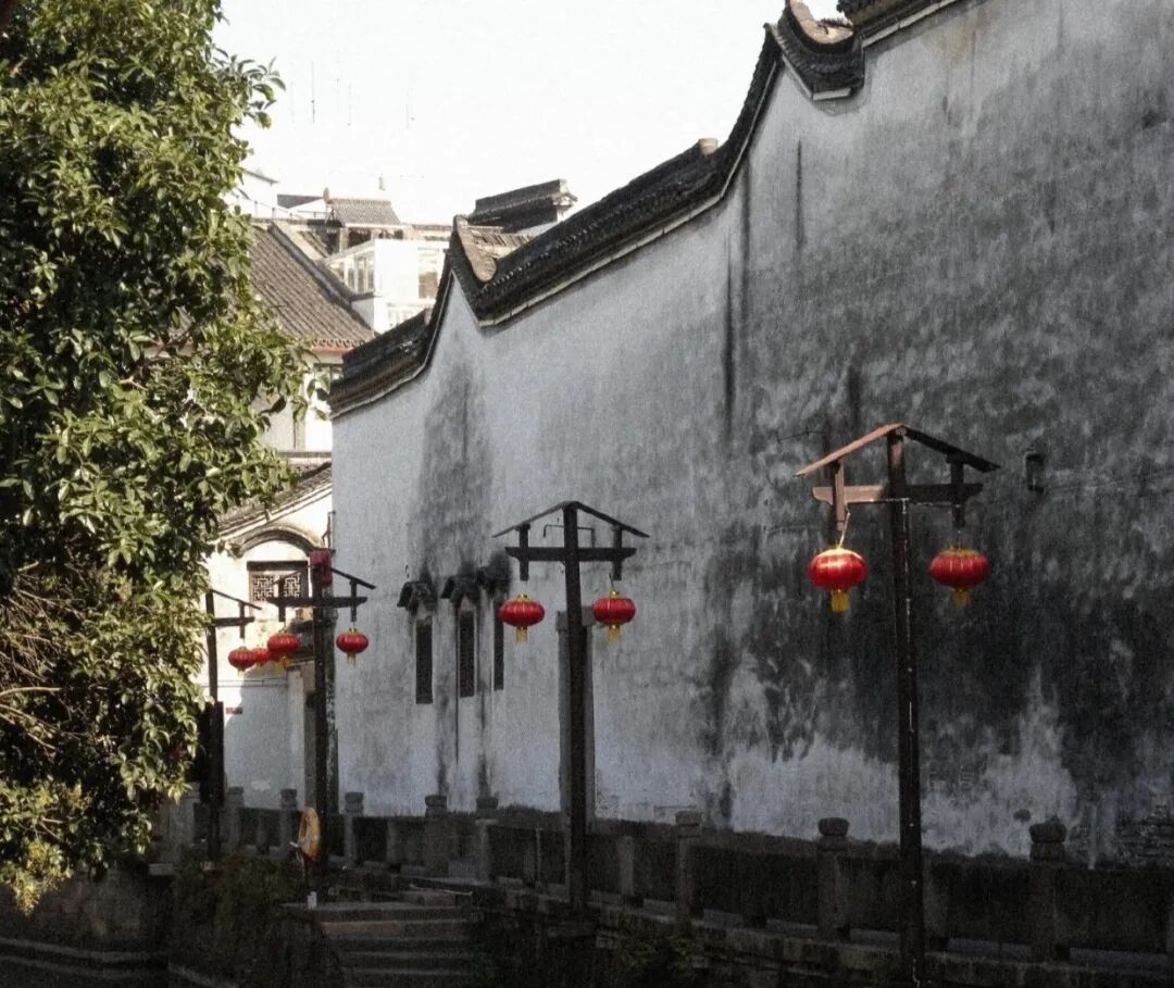 复古的灯盏,点亮了古镇深沉的夜,中国红的灯笼,在白墙黛瓦下,显得分外鲜艳,一盏盏红灯笼,迎风摇晃着,长长的线穗儿,有了江南的温柔,灯笼的影子,斜映在了墙面,新与旧的故事,也成了一幅简约的素描画。