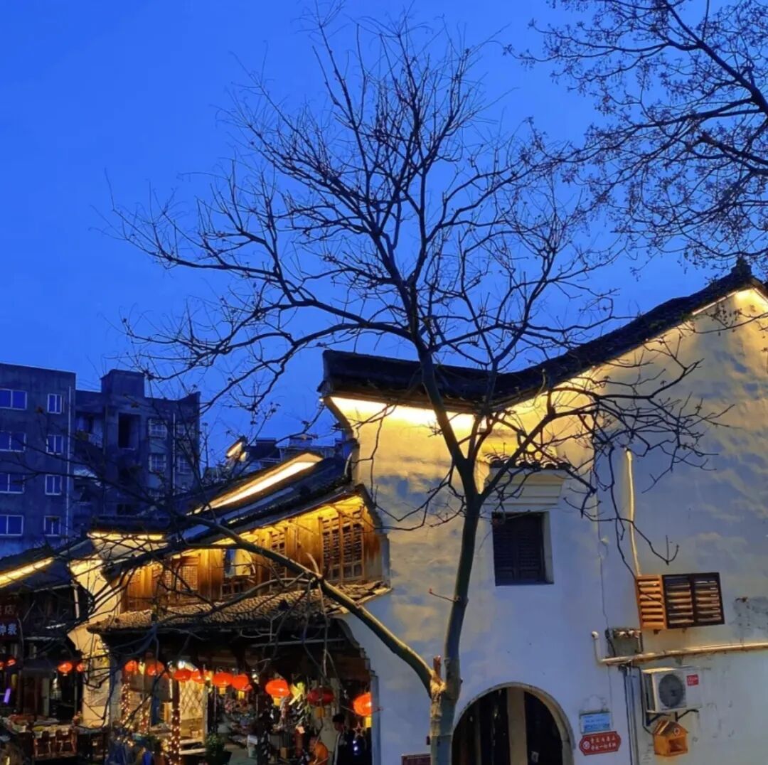 夜色下的古镇,点亮了浪漫的橘灯,暖色系的光芒,晕染着整个古镇,如一层温暖的滤镜,镀在了古镇上,小小的巷弄,也有了温暖的气息。