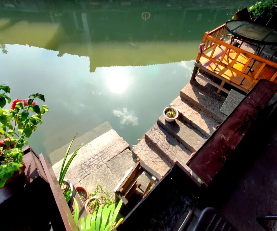 一半阳光,斜映在了灰墙,墙下的时光,静谧而美好着,水边葱郁的大树,枝繁叶茂着,新旧交替,枯叶翩然落下,树上又长出新的嫩叶,青石板路上,行人的足迹,淹没在了一场场春雨中,曾经的坑坑洼洼里,却记录着过往的美好。