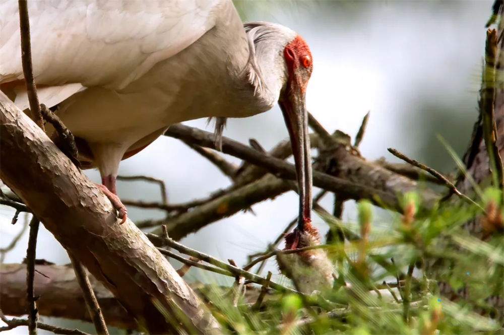 面对天敌,很多鸟类都会选择逃跑,但这一对朱鹮反而飞了过去,只因为巢穴里有它们的幼鸟。