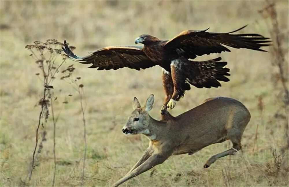 就算是凶狠的狼,金雕也照样敢下手,利用快速俯冲的力道,以及强壮的身躯和锋利的爪子去对付狼,还会出动弯钩状的嘴去啄狼的眼睛。
