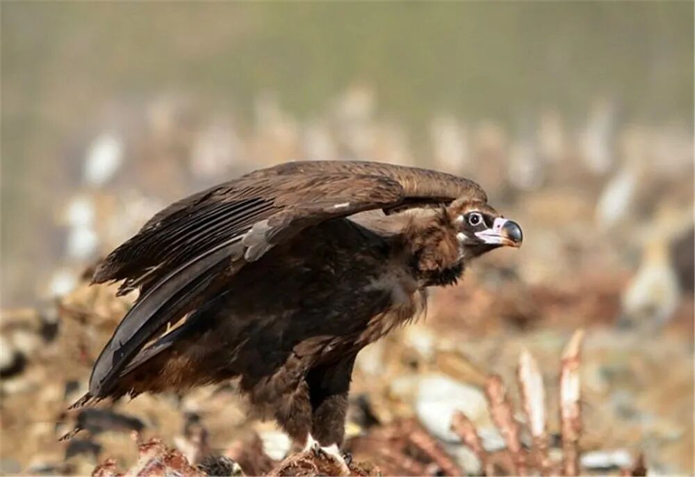 秃鹫大快朵颐,吃得很满足。也许是看这儿随时有羊可以捕食,秃鹫就此住下来,不走了。除了羊,它还会捕食大狗。