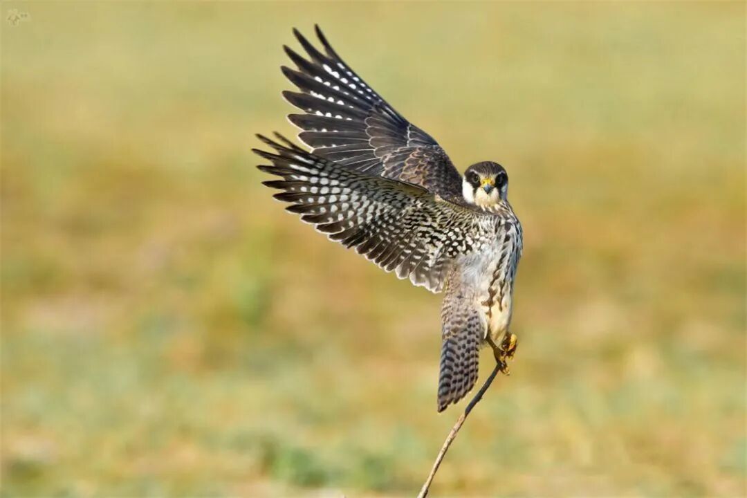 蚂蚱鹰又叫青条子,中文学名叫燕隼,体型比猎隼小,属于小型猛禽,是国家二级保护野生动物。喜欢生活在有稀疏树木的开阔平原、旷野,分布较为广泛,几乎遍及全国各地,飞行速度特别快,稍不留神,就算它从你眼前飞过都难以发现。