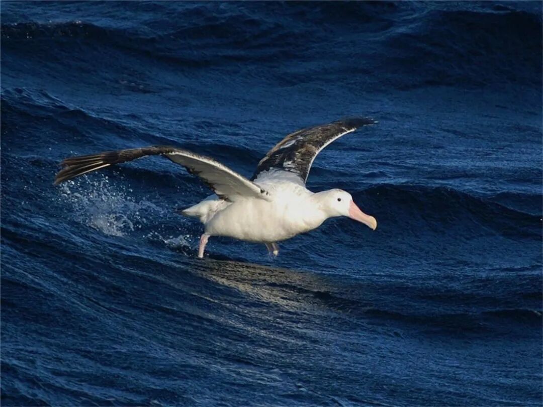 作为大型海鸟,信天翁展现出应有的风姿,哪里风浪大,就在哪里出现!当大海上风急浪高时,信天翁一下子潜到海浪里,一下子又冒出头来,看上去好不刺激,而信天翁会觉得好爽啊!