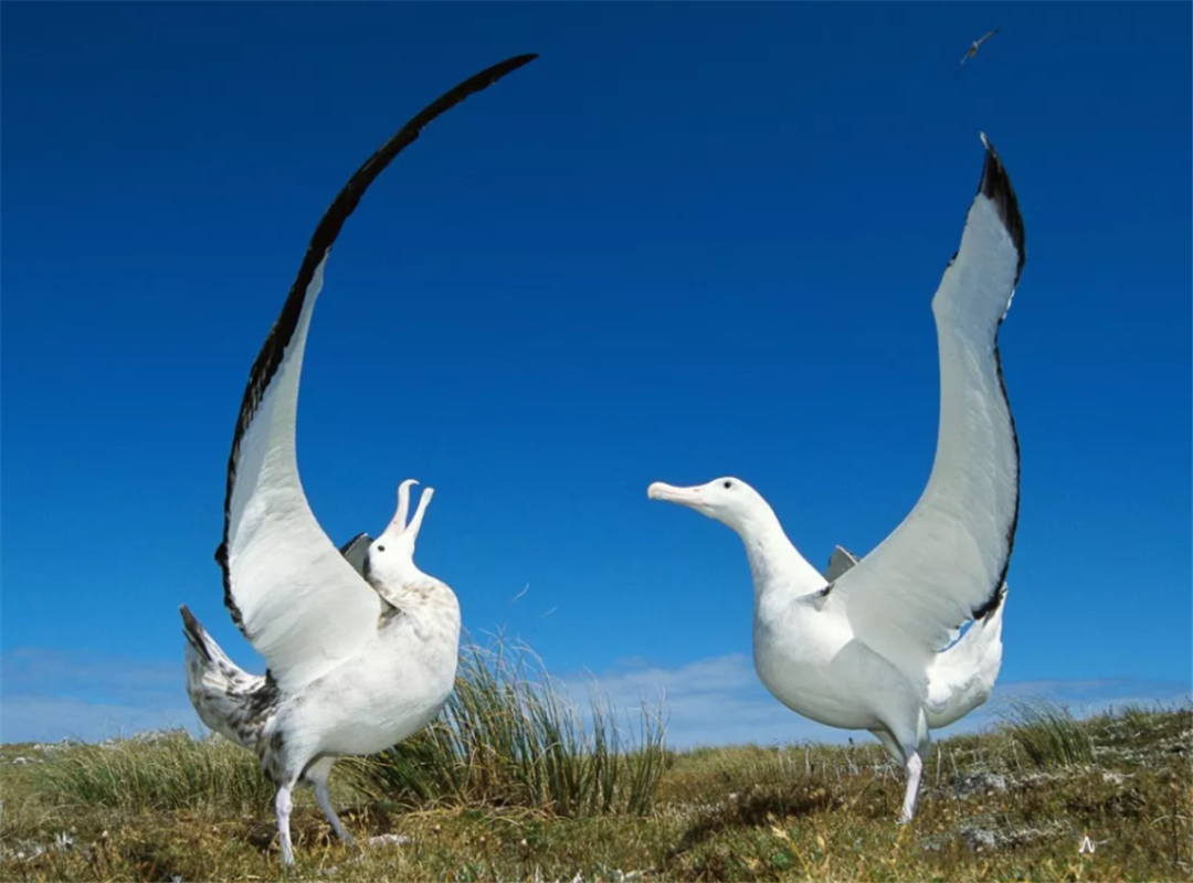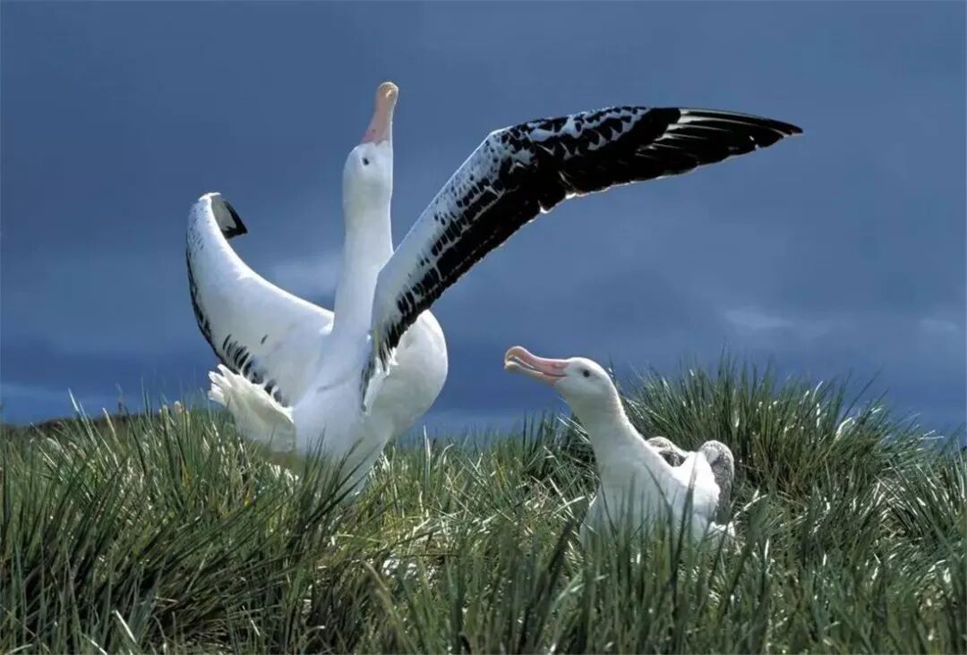 你别看信天翁呆呆的,像傻大个一样,其实它们很浪漫,漂洋过海回到海岛上,等着远方的伴侣归来,然后相亲相爱一段时间。
