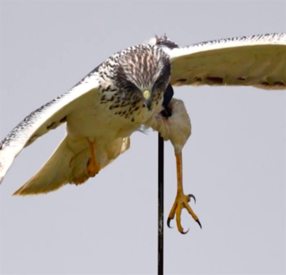 白腹鹞具备猛禽的弯钩嘴与利爪,这是它们的“武器”。爪子是黄色,锋利且灵活,能够精准地抓住猎物,也能在空中与同伴传递猎物。