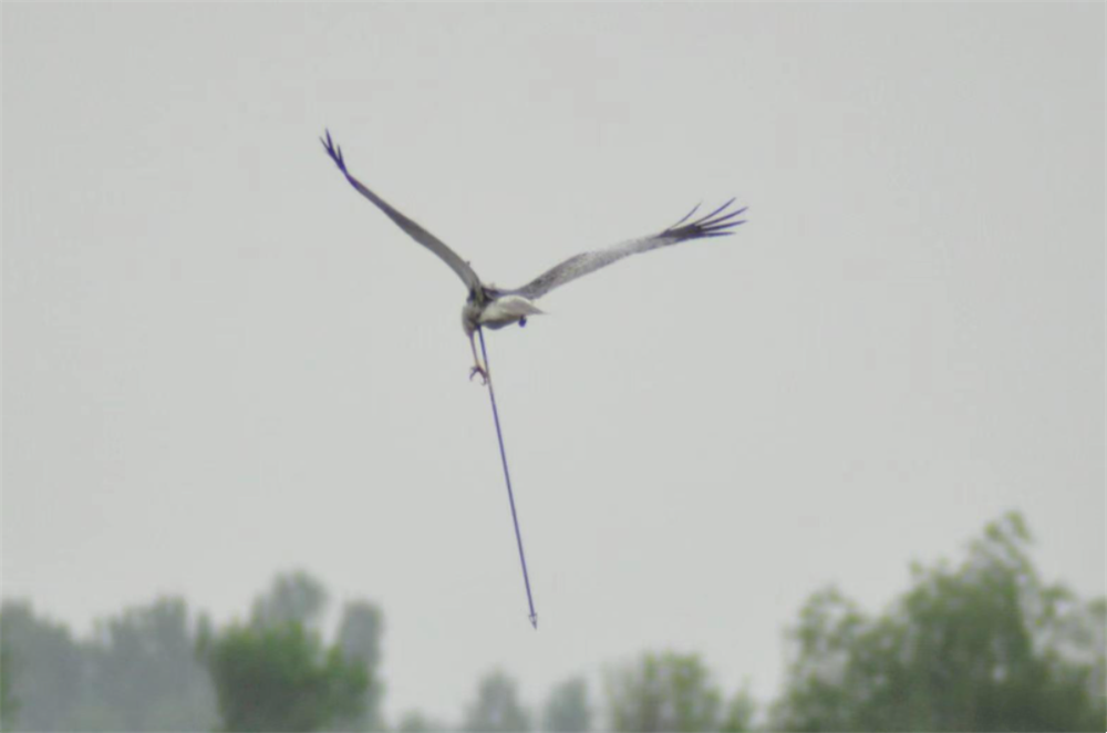 白腹鹞乘着气流在空中盘旋,飞到茂密的芦苇丛中,如果发现人靠近,就再度逃离。目前为止,救助人员仍未能捕捉到受伤的白腹鹞进行救治。