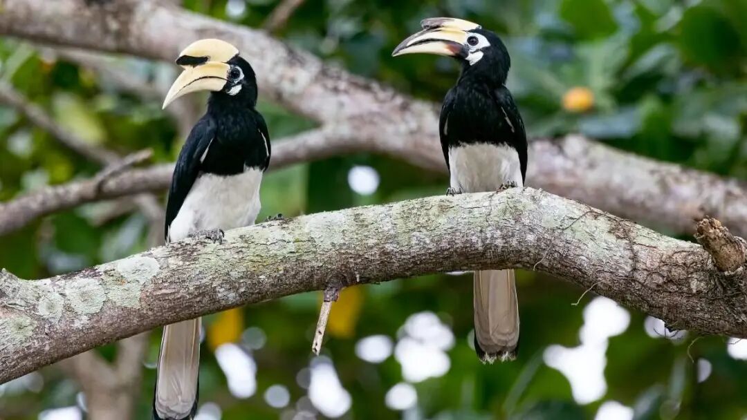 在广西大明山国家级自然保护区里,护林员发现一种“爱情鸟”——冠斑犀鸟。它们在树上相依相偎、形影不离,双双立于枝丫间,时不时为对方梳理羽毛。