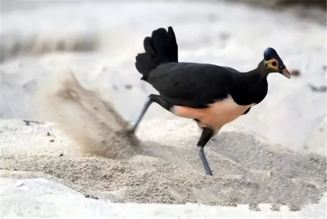 大约一年后,雄鸟发育成熟,它们也能像“父母”那样从事辛苦的营冢工作了。这种习性纯粹出于本能,因为它们从来没有向雄鸟学习过,话说,也没地方学习呀。