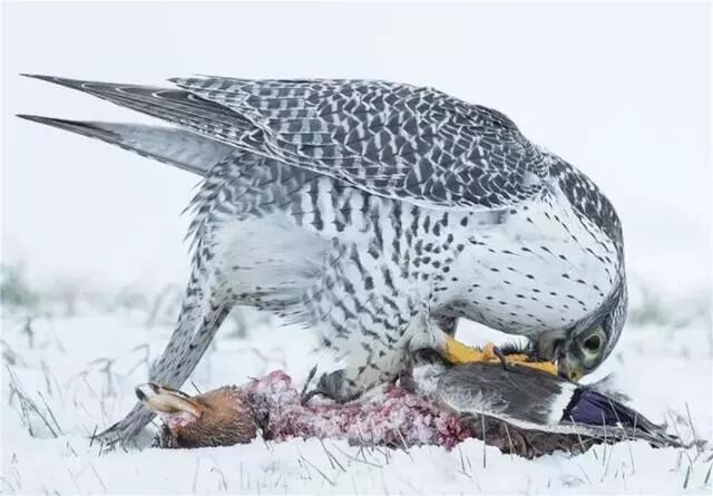 大家知道,矛隼主要以野鸭、海鸥、雷鸟、松鸡等鸟类为食,当然也少量捕食老鼠、野兔与蝙蝠等中小型哺乳动物。