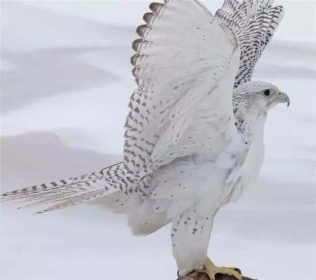 第五,在所有的隼类中,有白色个体的也只有矛隼。《柳边记略》:“海东青者,鹰品之最贵重者也,纯黑为极品,纯白为上品,白而杂他毛者次之,灰色者又次之。”《异域录》里也记载,海东青“有雪白者,有芦花者,有本色者”。从羽毛颜色上,矛隼显然符合上述记载、描述。