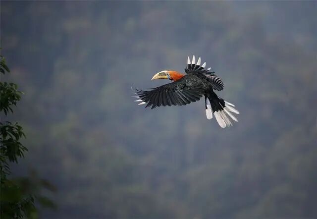 犀鸟喜欢生活在热带雨林里,相对来说,棕颈犀鸟更喜欢深山密林的环境,栖息在海拔600-1800米的热带、亚热带常绿阔叶林中,国内主要分布于云南南部、西藏东南部。
