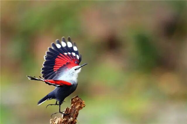 红翅旋壁雀的“怪”,体现在它的反差大,明明是个貌美如花的小精灵,却喜欢生活在荒凉的悬崖峭壁;明明平常喜欢独来独往,自由自在,但一到繁殖期就很有“家庭责任感”,尽心尽责地守护雌鸟与幼鸟。