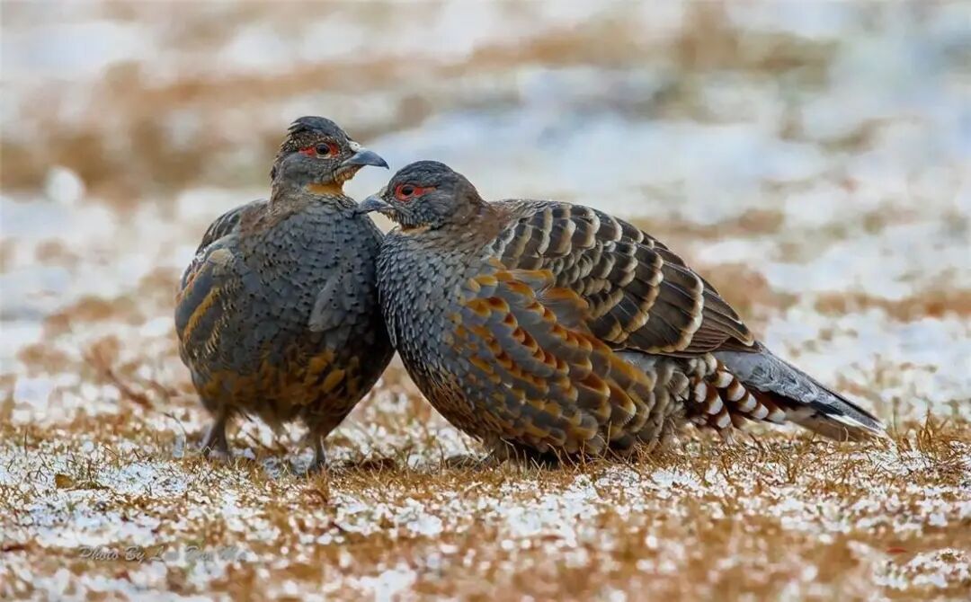 羊角鸡的学名叫四川雉鹑,因为喉咙处点缀着一抹黄色,又被称为黄喉雉鹑。当地人更喜欢称呼它为羊角鸡,亲近贴切,叫着顺口。羊角是当地对杜鹃植物的叫法,而羊角鸡就是指生活在杜鹃灌丛中的四川雉鹑。