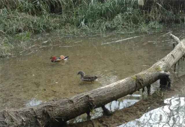 今年1月初,护林员在密林深处又发现一群鸳鸯,不知道从哪来迁来的,他们也不急着筑巢,时常在水中戏水,时而又上岸用嘴巴互相梳理羽毛。外出觅食,雄鸳鸯总是走在前面带路,雌鸳鸯跟在后面,悠然自得,有什么好吃的,雄鸳鸯总是留给它。