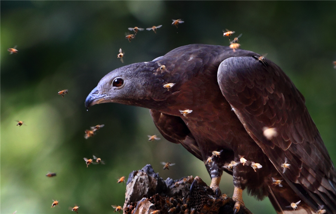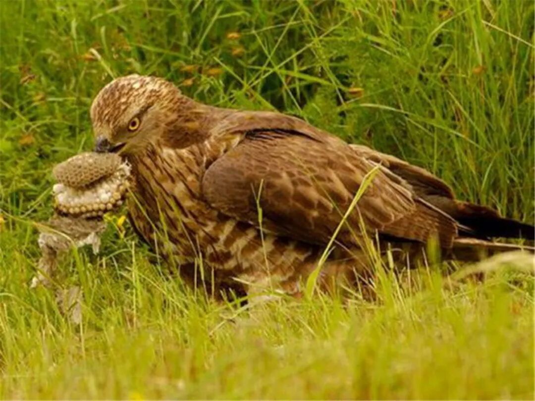 虽然蜂类昆虫都长有蜇人的毒刺,有一些甚至能置人于死地,但是,凤头蜂鹰吃它们就像嗑瓜子那么简单。不光吃成虫,还吃它们的幼虫、虫卵,当然也不会放过蜂蜜、蜂蜡,就连它们的蜂巢都全部吃掉,对蜂家族简直就是赶尽杀绝!