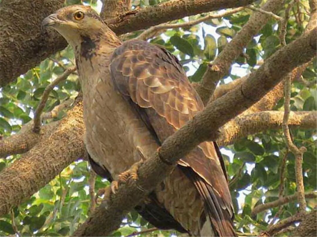 凤头蜂鹰又称东方蜂鹰,别名叫做雕头鹰、八角鹰、蜜鹰,为中型猛禽。凤头蜂鹰这名字是有来历的,凤头是指它们头上生有冠羽,而名中的“蜂”则是指它们的酷爱野蜂,看来真是鹰如其名。