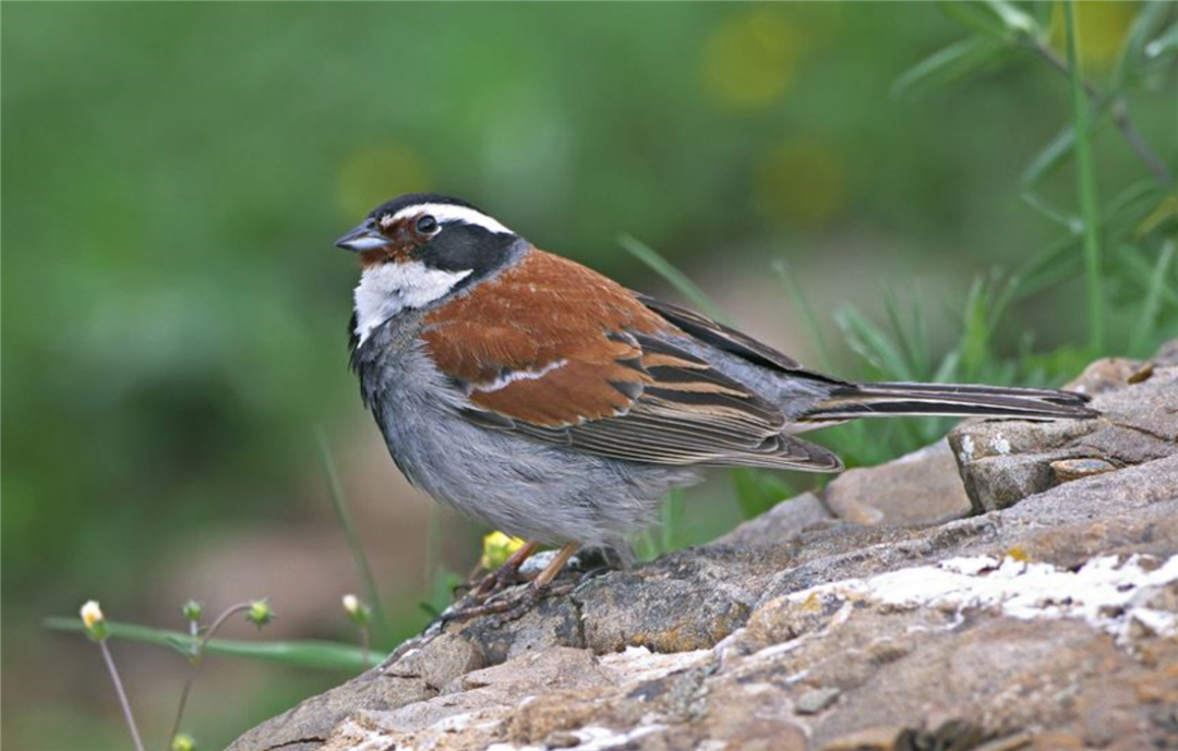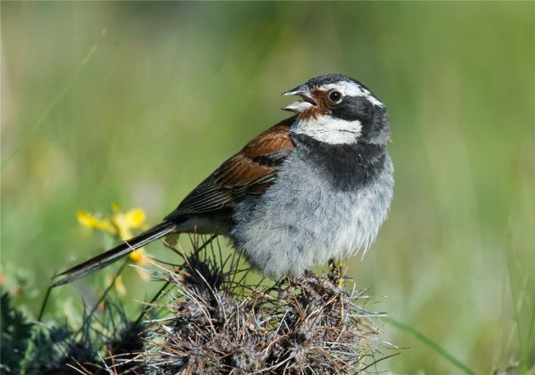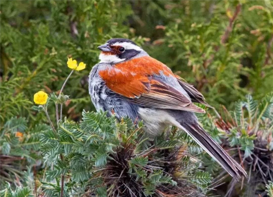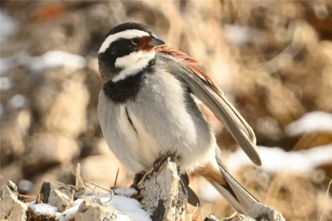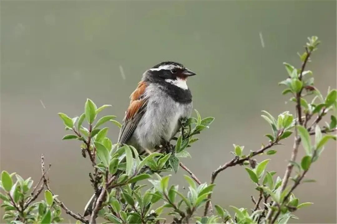 小小的身躯,体羽如麻雀,黑白灰与栗红色混搭,这就是小型鸣禽——藏鹀。它胸前的羽毛蓬松柔软,显得圆滚滚的,但体态却比较典雅。