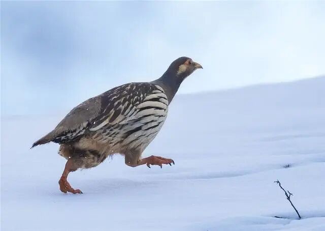 藏雪鸡还长了一双短却有力的脚,可以在高山陡峭地带能够轻松奔跑,还能在陡崖上行走,哪怕是在积雪厚的山地上,也能健步如飞。