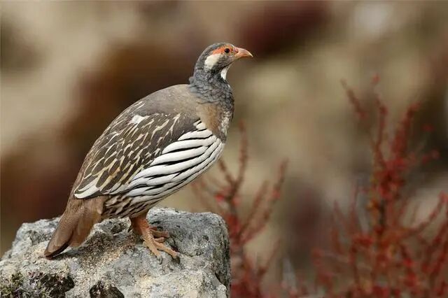 生性警惕的藏雪鸡,在觅食时没有“哨兵”,反而是休息时,由年老经验丰富的藏雪鸡负责放哨,站在高高的岩石上,一旦发现有猞猁、狐、雕、秃鹫等天敌靠近,就会大声鸣叫报警。