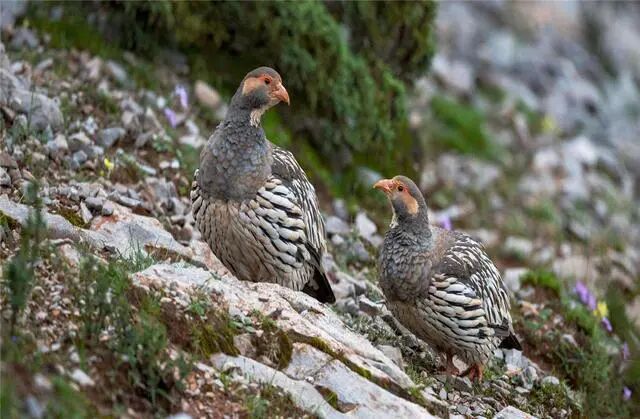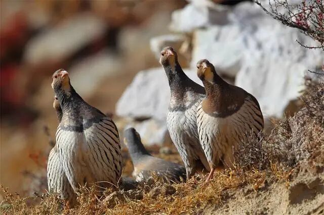 藏雪鸡喜欢热闹,喜欢结群活动,一般都会3-5只的小群活动,在分布密度高的地方,可以见到10-20只。