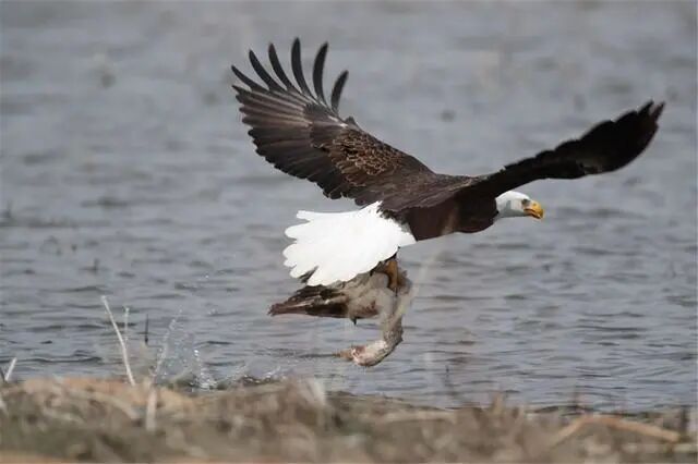 白头海雕很像一个“强盗”,它经常抢夺别人的猎物。不仅如此,白头海雕的捕猎技能很强悍,凡是被它盯上的猎物基本上就很难逃脱。但是这一次白头海雕不仅没吃到猎物,还把小命给搭上了。