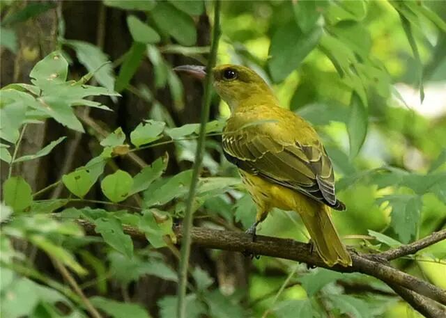 经过勘察,这对布谷鸟已经物色好了黄莺的巢,这两天它们正蹲守在黄莺的巢穴旁,等着黄莺离巢,然后“伺机作案”。下午时分,黄莺抬起头来,东张西望,没有发现异样,就飞出去觅食了。