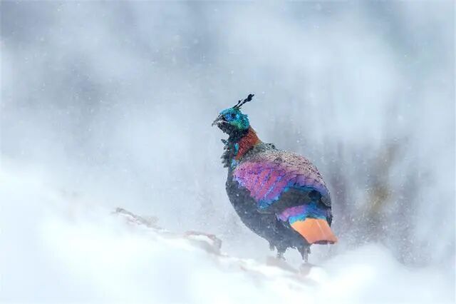 这种生活在西藏南部的九色鸟种群数量稀少,在中国估计总数不足1000只。希望棕尾虹雉在高原上无忧生活,在夏天的雨雾中,在冬天的风雪中,快乐奔跑!对野生动物最好的保护,就是离它远一点!