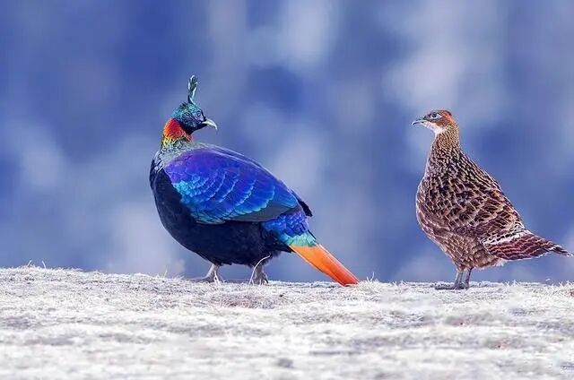 棕尾虹雉掌握了独到的光学魔术,让自己的羽毛多姿多彩,比高原上的彩虹更光彩夺目。九色鸟这个别名,正是由此得来。
