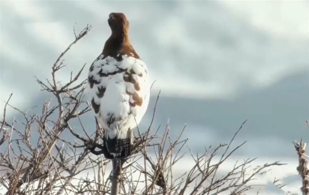 但是现在雷鸟的羽毛才换了一半,冬天已经来临,只好披着一身半白半黑的羽毛出去找吃的。这对毫无战斗力的雷鸟来说,是一件挺危险的事情,因为很容易就被食肉动物盯上。