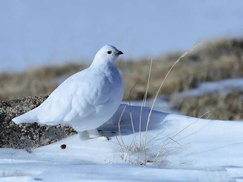 雷鸟的换羽速度很快,没几天就能全部换成白色,脚上穿着“雪地靴”,身上披着浓密的白色羽毛,一点都不怕寒冷。