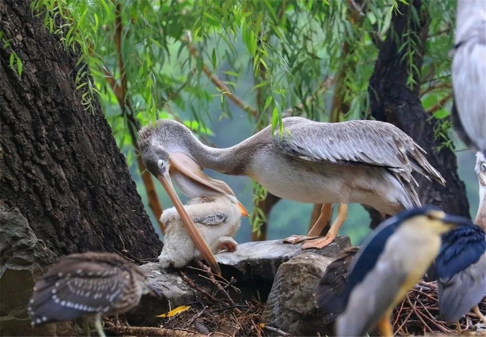04幼鸟把头伸到亲鸟的大嘴里,吃半消化食物