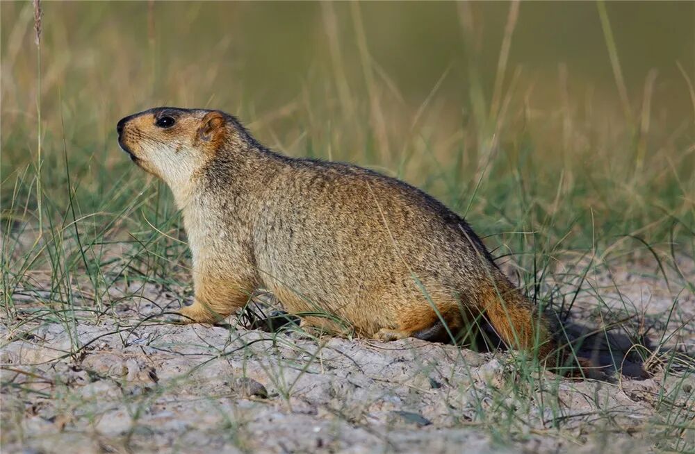 此时,雄金雕正在捕猎呢,它飞到草原上空,巡视着地上的情况。草原上,旱獭纷纷出洞觅食,有的吃着鲜美多汁的植物,有的在嬉闹,时不时直立起来,观察四周。