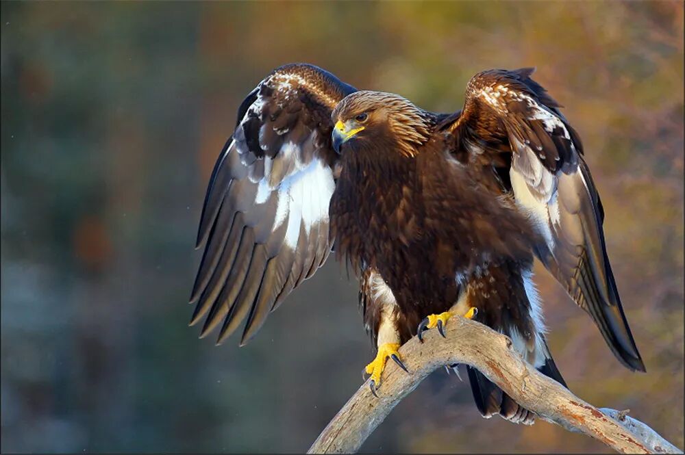 金雕为了让幼鸟吃饱,会去捕食小岩羊、小野猪等比较重的动物,还会把猎物整个运送回巢穴。
