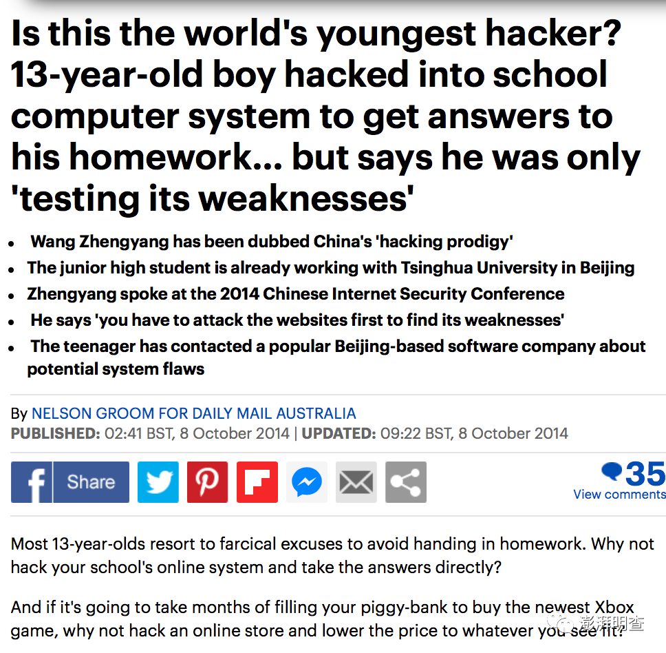 当时的相关报道就曾在国内引起公众关注,汪正扬也因此被称为“中国年龄最小的黑客”,《每日邮报》2014年10月也报道过这名“黑客神童”(hacking prodigy)。如今的汪正扬也已经到了20岁左右的年纪,虽然淡出了公众视野,但很显然江湖上仍有他的传说。