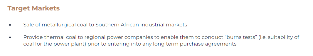 坎坦戈官网对鲁布煤炭项目“目标市场”的描述