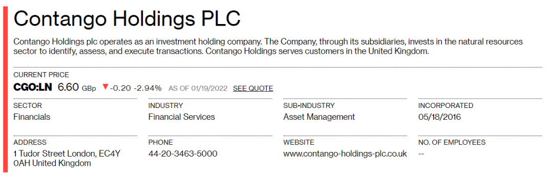彭博社(Bloomberg)对黑貂矿业/CGH的介绍