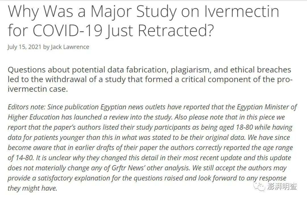 2021年7月,分析评论网站Grftr.news的创始人杰克•劳伦斯发现该研究数据存疑,随后原论文被撤回。劳伦斯目前正在攻读生物医学专业的硕士学位,业余时间他致力于撰写错误信息和伪科学的文章和研究。
