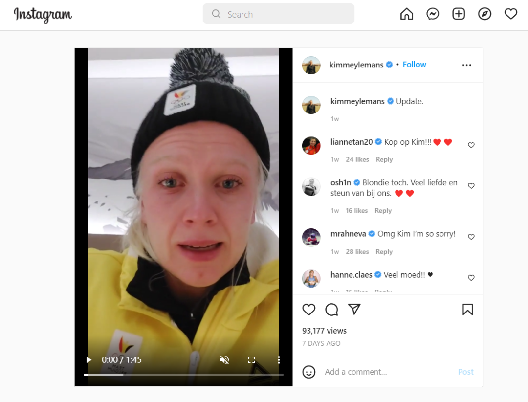 1月31日,迈勒曼斯在IG上通知其粉丝她要离开奥运村前往酒店隔离的消息。