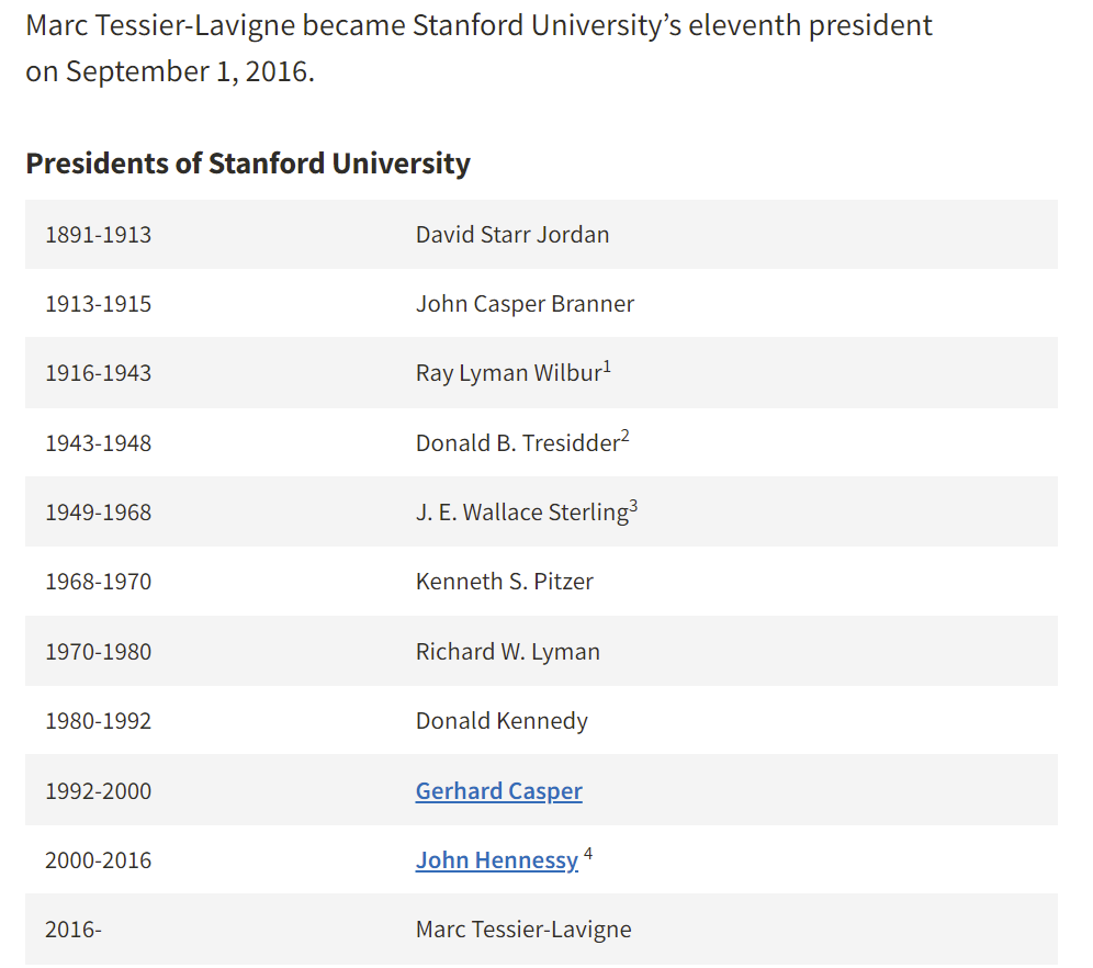 斯坦福大学的现任校长名叫马克·特希尔-拉维尼(Marc Tessier-Lavigne)。经核查,斯坦福历史上从1891年至今履职的11任校长中,没有一位以“Derlex”为姓或名。