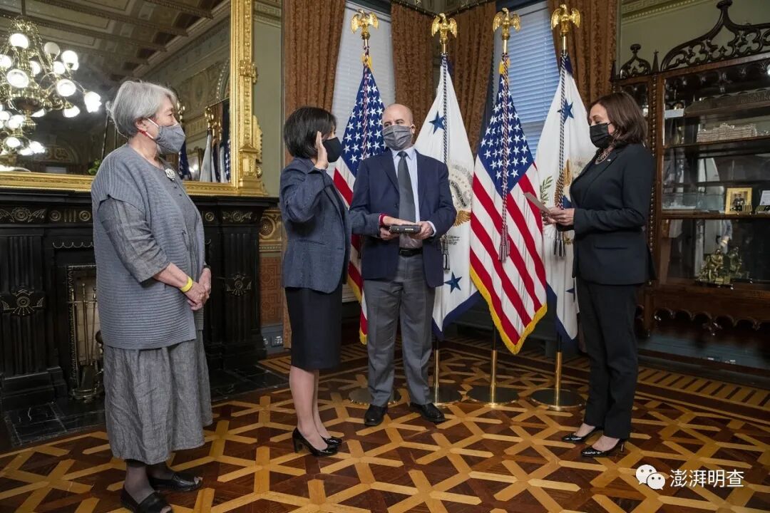 当地时间2021年3月18日,美国华盛顿特区,美国贸易代表戴琪出席宣誓就职典礼,副总统哈里斯出席。