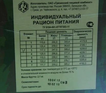 对上述图片的反向搜索同时还指向了另一张内容相似的图片。一位名叫hamshenci的用户在2014年7月11日于livejournal论坛上发帖称,他在准备一场前往Achishkho山脊的旅行。为了减少背负,他决定尝试军队干粮,于是在一家专卖店花350卢布买到了下图中展示的军粮。